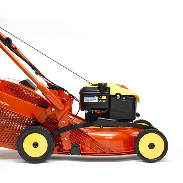- 1 seule lame de 80cm et de très grande puissance avec ses ailettes pour propulser l'herbe dans un canal d'éjection court favorisant l'évacuation même quand l'herbe est haute ou humide avec le ramassage possible des feuilles des arbres en automne sans bourrage !
