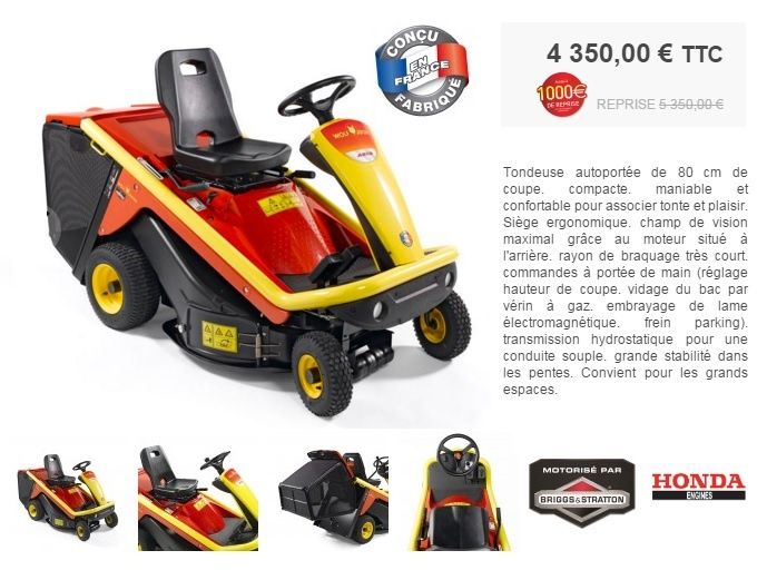 - 80cm de coupe pour passer partout et pourtant peut tondre 7200m² / heure !